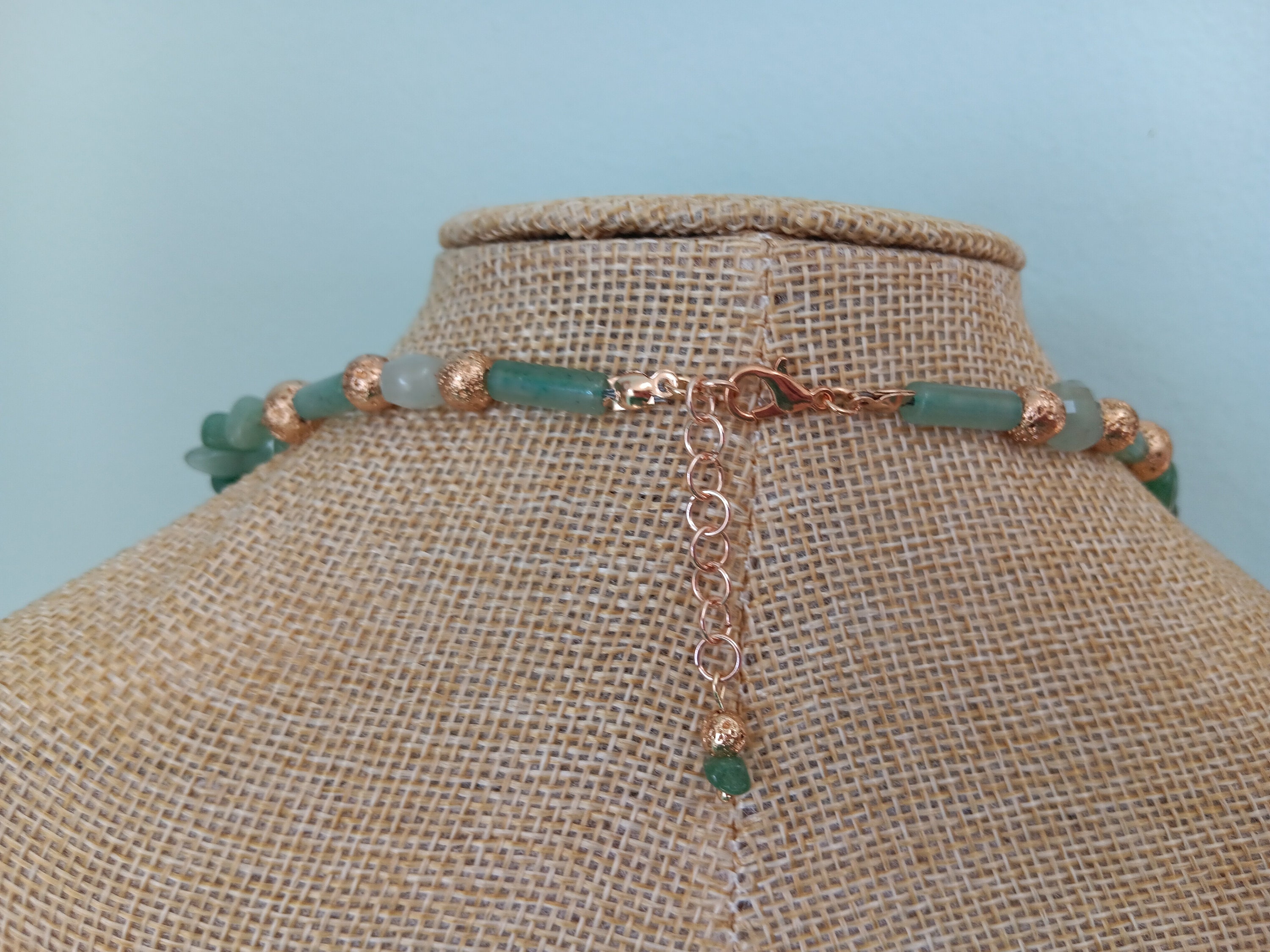 Beautiful and elegant three strand green aventurine and lava gold pendant necklace set will add a special touch to any outfit or ocation.